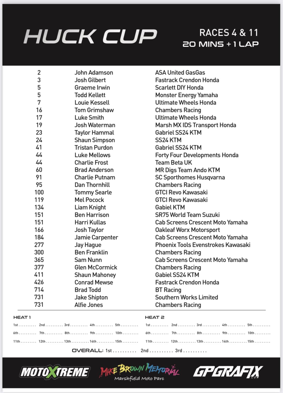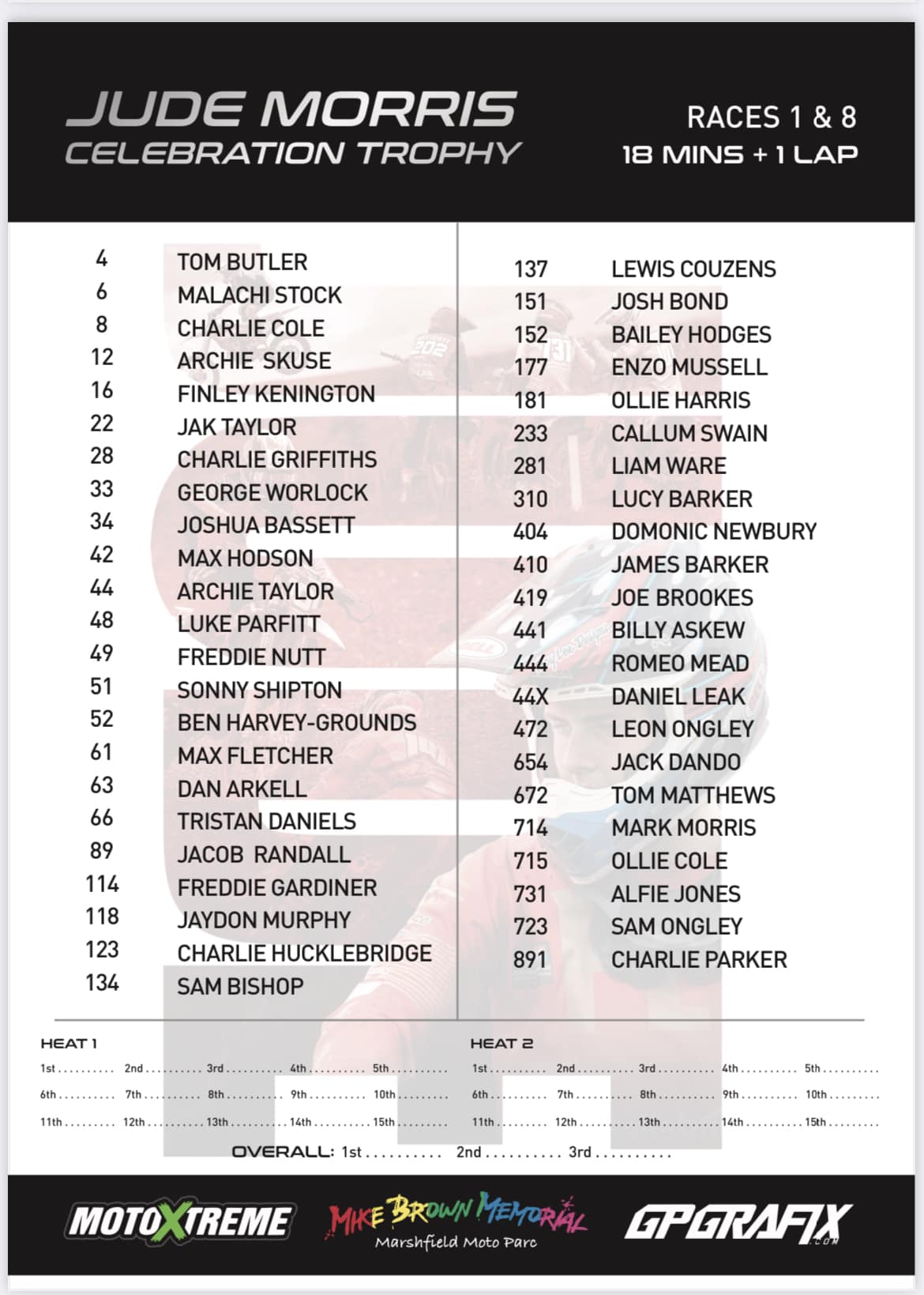 The Jude Morris Racing Basis was arrange by his unimaginable father Mark (there’s a completely different Mark Morris within the entry checklist), as a method of constant his legacy to contribute to younger British Motocross expertise in addition to elevating appreciable sums to the Air Ambulance. Additional information at www.jmracing-foundation.com